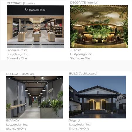 「Shortlist(最終選考候補)」にはDecorate(interior)部門にて2作品、「Official Selection(入選)」にはBuild(建築)部門にて1作品とDecorate(interior)部門にて1作品が選ばれました。