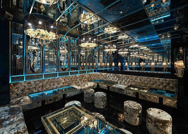 空間デザインは、シャンパンゴールドにターコイズブルーの差し色が光として反射することで成し得るラグジュアリーなものを目指しました。