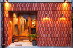 既存の屋外床レンガをそのまま店内にも繋げることで外と中の境界をなくし、